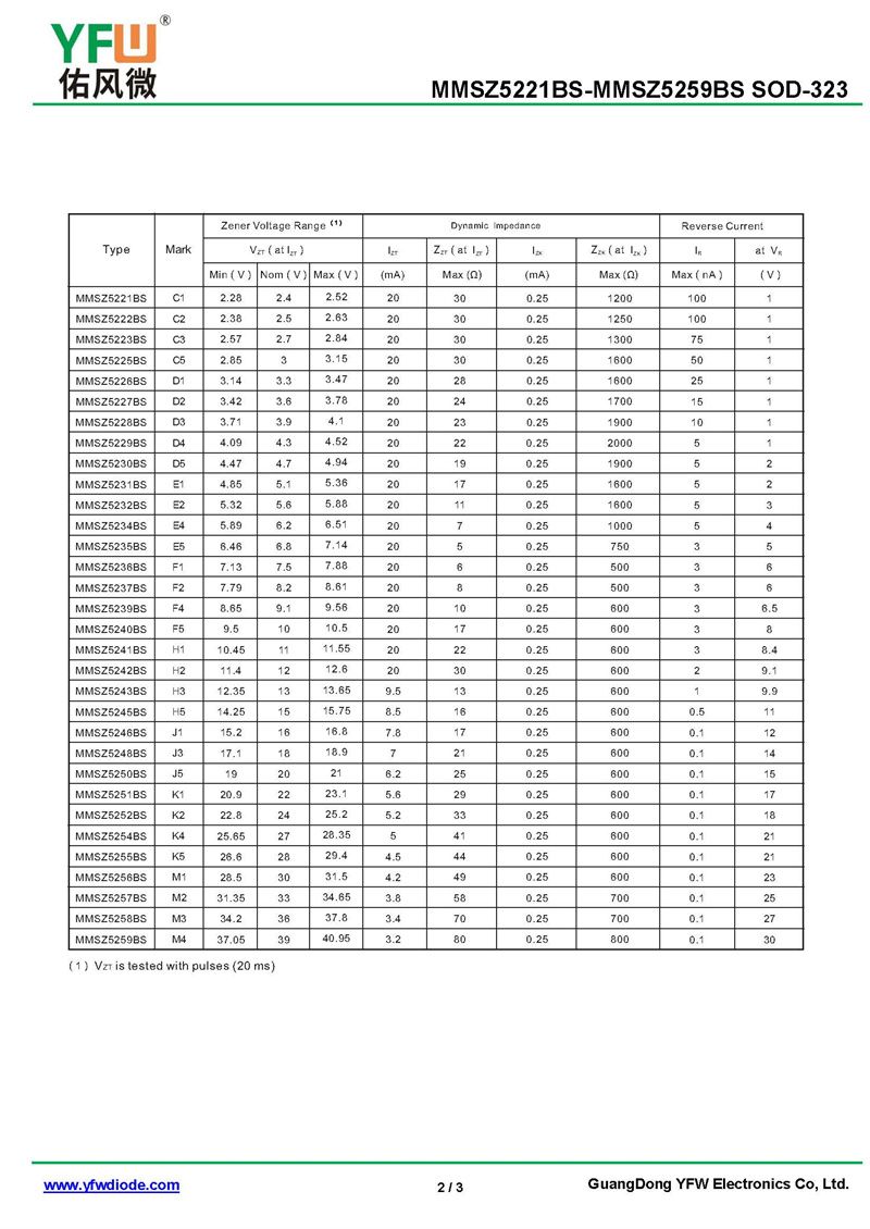 穩壓二極管MMSZ5254BS 規格書_價格_PDF手冊-廣東佑風微原廠MMSZ5254BS SOD-323(佑風微)品牌