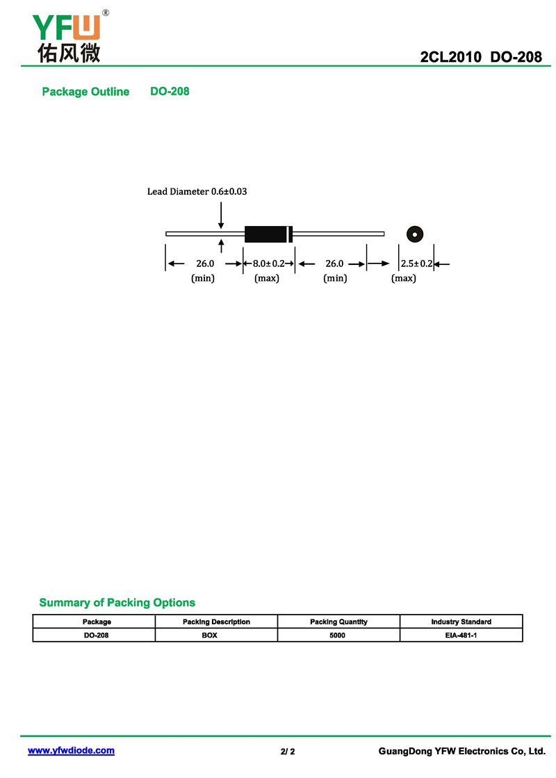 高壓二極管2CL2010 規格書_價格_PDF手冊-廣東佑風微原廠2CL2010 DO-208_(YFW佑風微)品牌