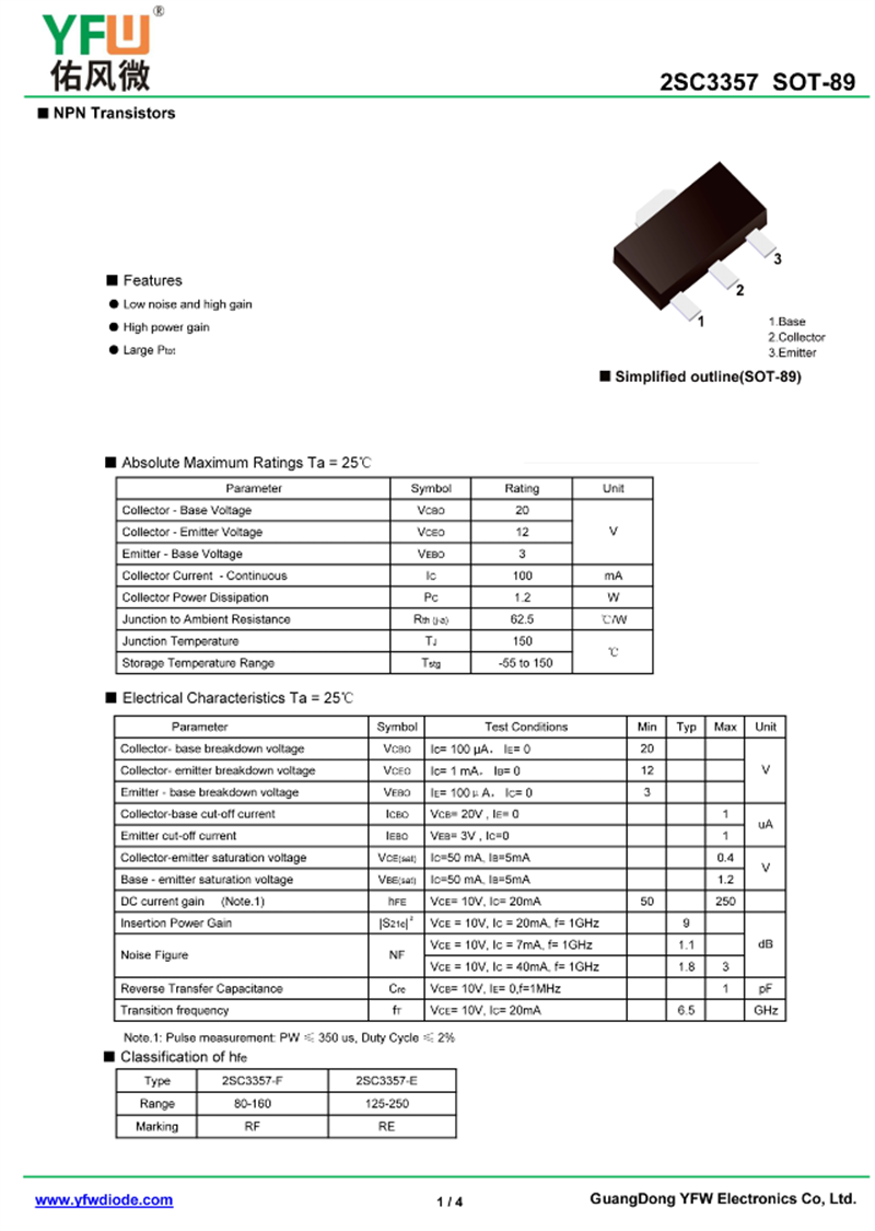 晶體管2SC3357 規(guī)格書_價格_PDF手冊-廣東佑風(fēng)微原廠2SC3357 SOT-89_(YFW佑風(fēng)微)品牌